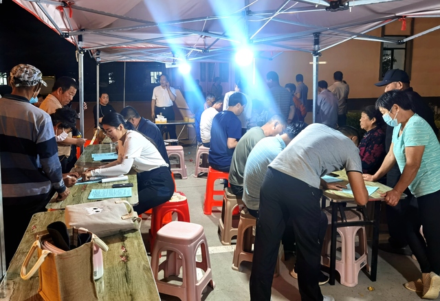 夜深了,接种的人群已经散去,但卫生院接种点仍旧灯火通明,志愿服务人员们顶着困意,坚守在疫苗接种现场,他们有的在对照已接种人员的底数筛选出未接种人员,然后挨个打电话询问原因,是否能预约第二天的接种、有的协助医护人员录入数据、有的整理场合为第二天工作做好准备。