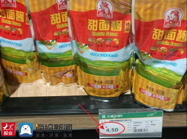 近日,滨州沾化市民路女士向大众网·海报新闻记者反映,自己在滨州市沾化区大福源百货购物广场消费时,发现甜面酱标价与售价不符,疑存在乱收费问题。除甜面酱外,她购买的花生油等产品也存在结算价高于标价的问题。